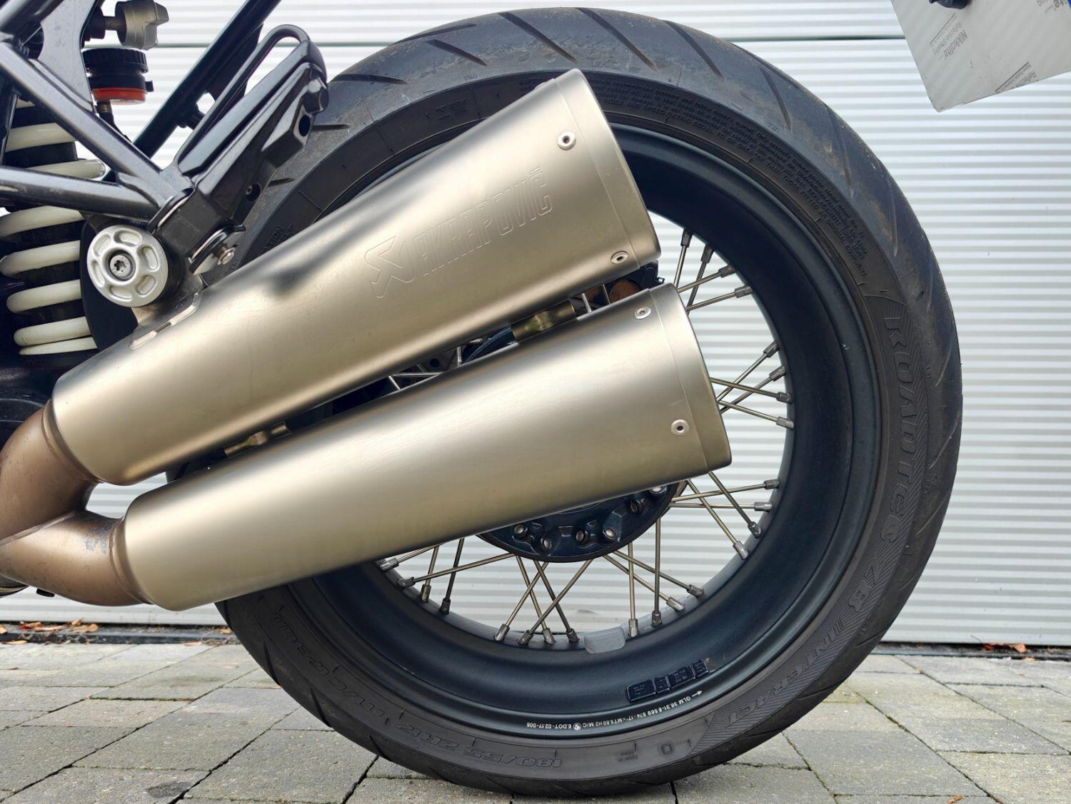 BMW R nineT in good condition finished in black with 13,691 miles. This bike benefits from service history, akrapovic exhaust system, colour coded seat cowl, spoke wheels and heated grips.