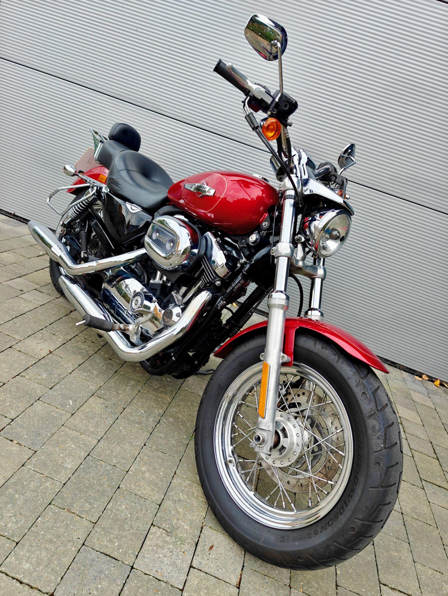 HARLEY-DAVIDSON Sportster XL1200C Custom finished in red with 14,722 miles. Which benefits from serice history, spoked wheels and sissby bar with rack.