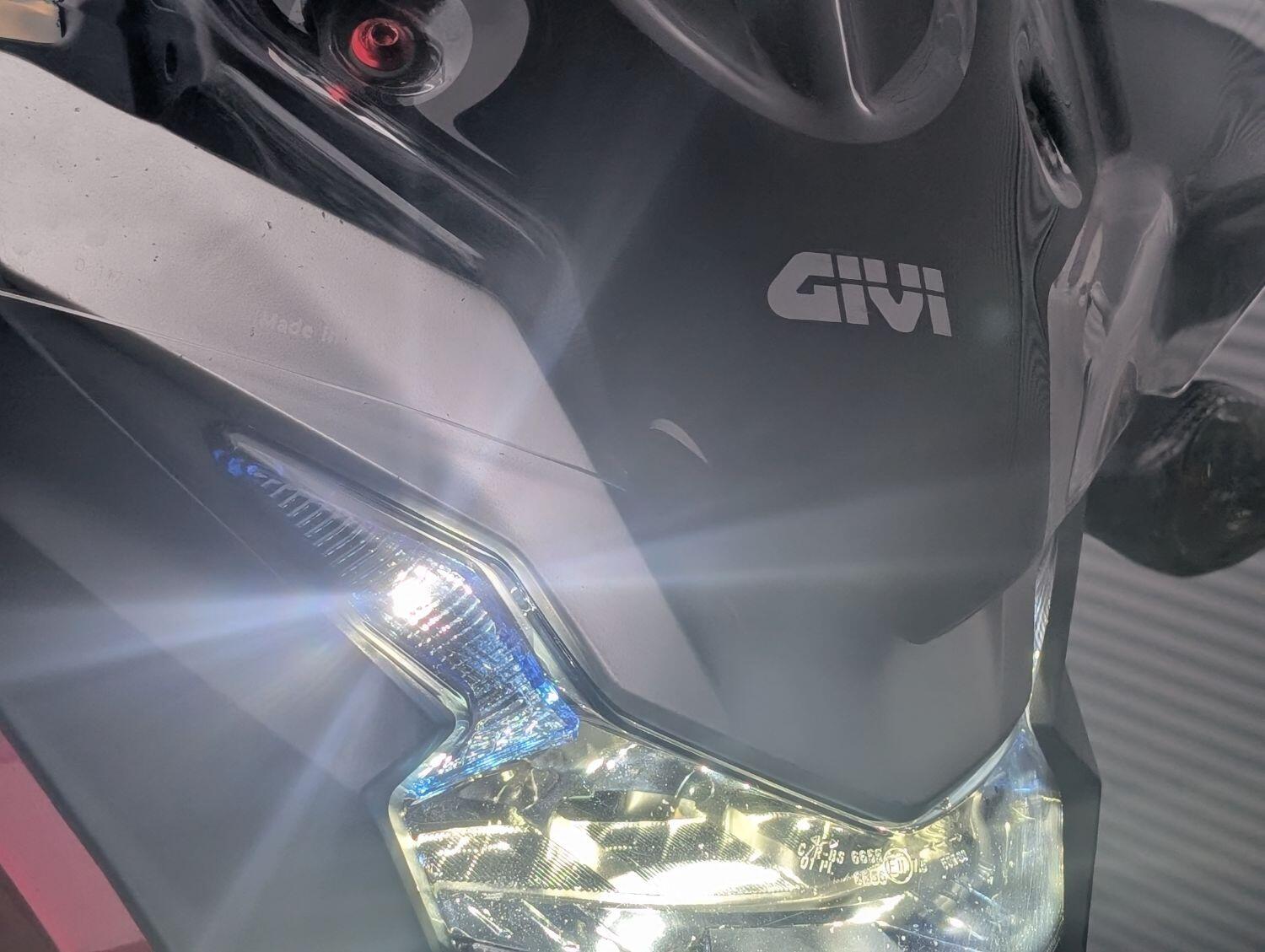 Comes with GIVI Visor, GIVI Top box, Oxford Heated grips, Adjustable levers, Ermax belly pan, Pyramid rear hugger, Akrapovic Exhaust, spot lights and new rear tyre.