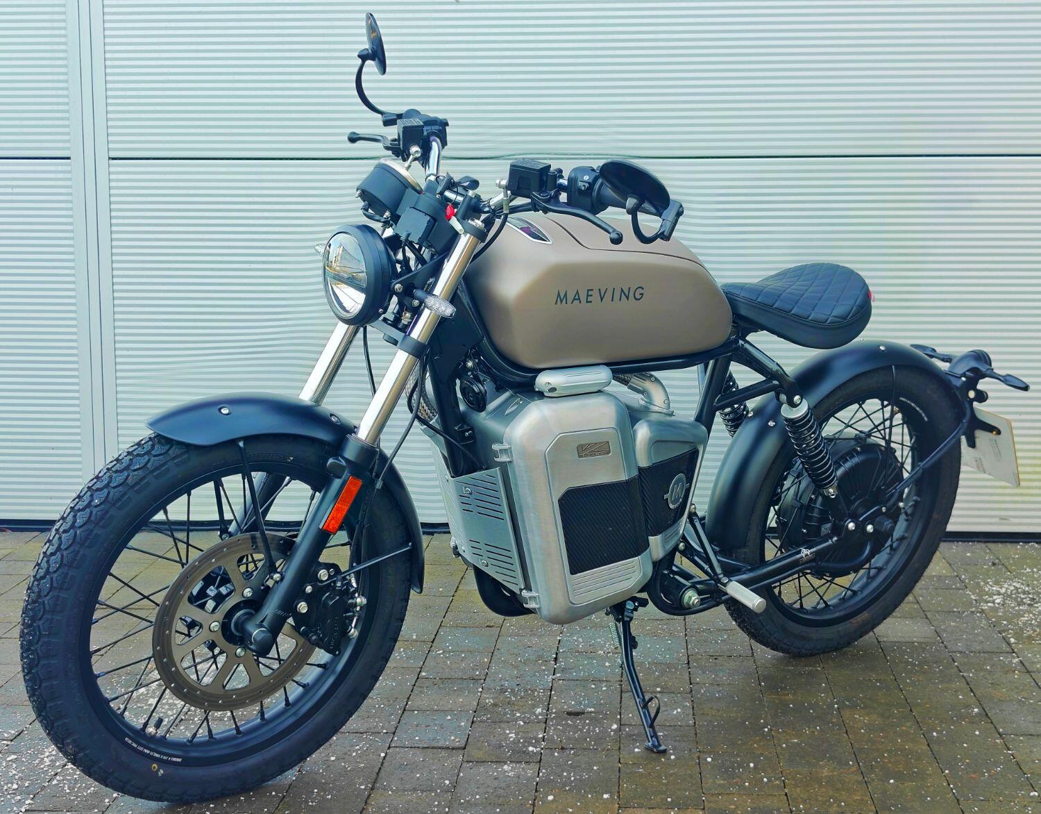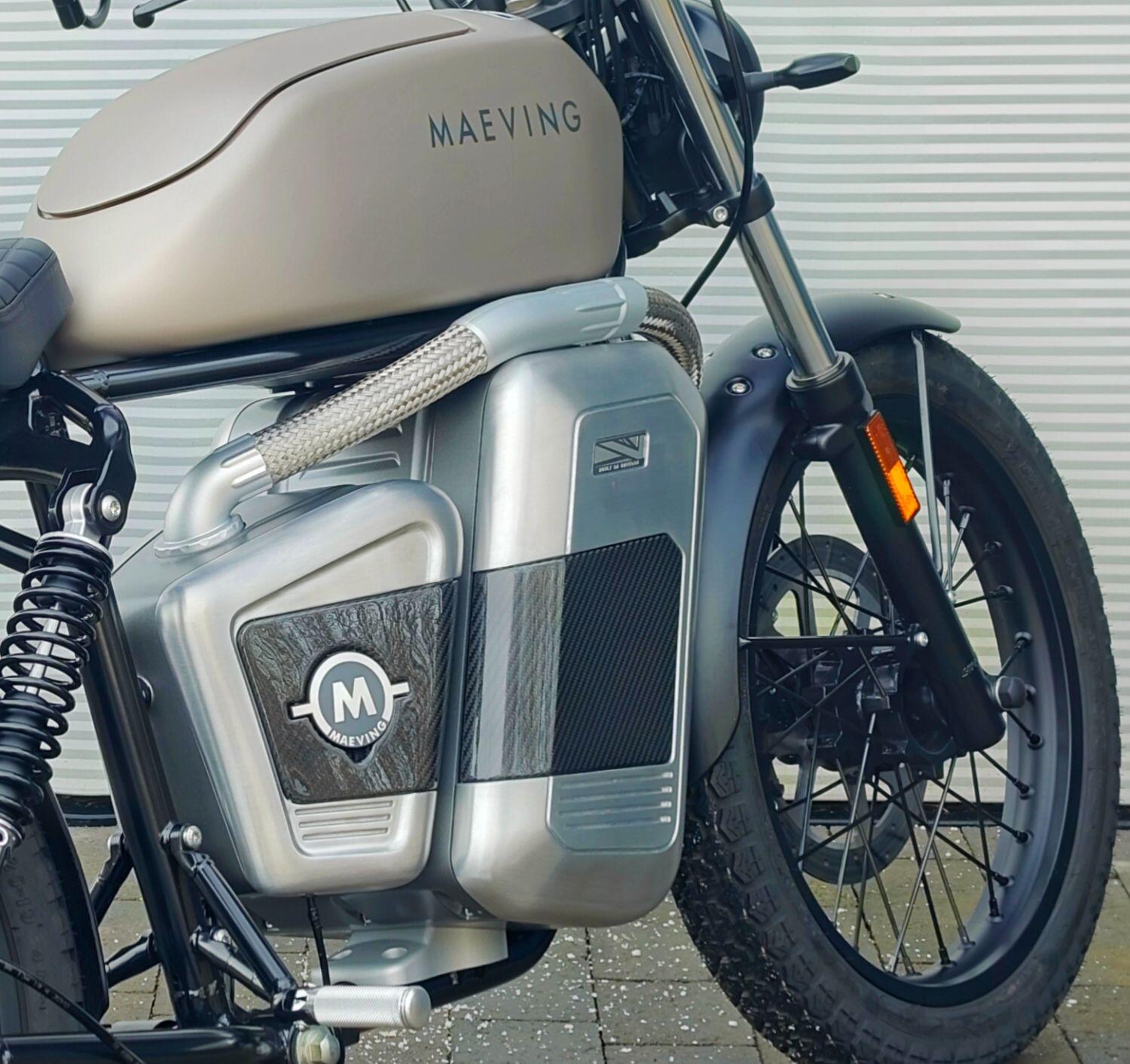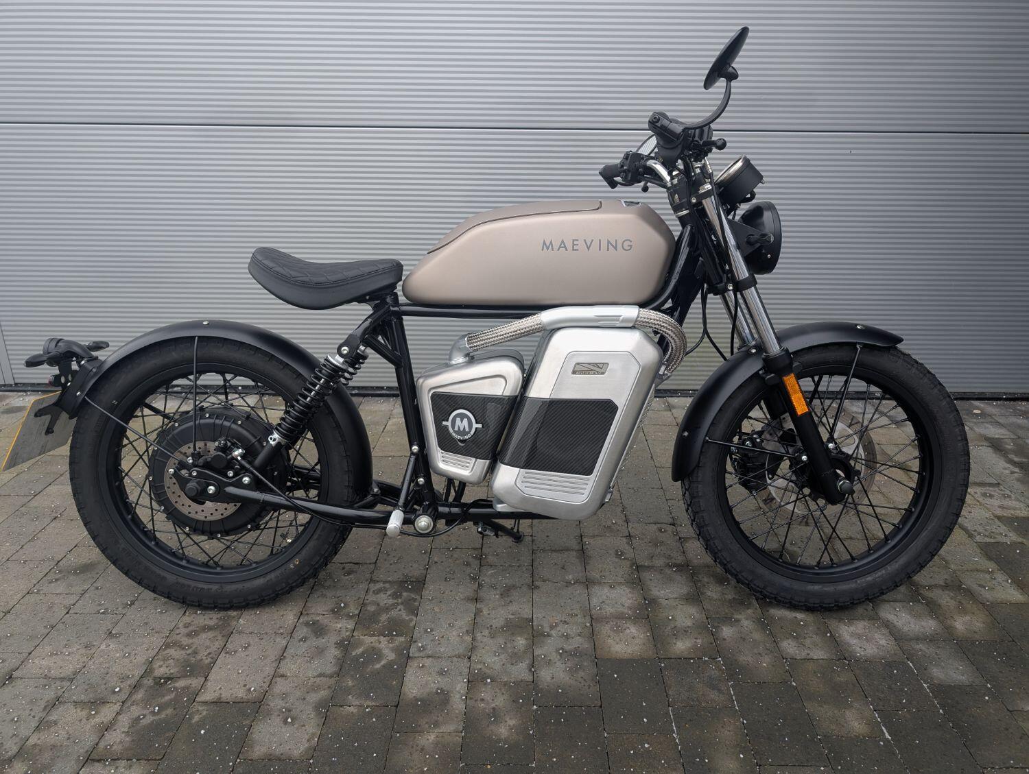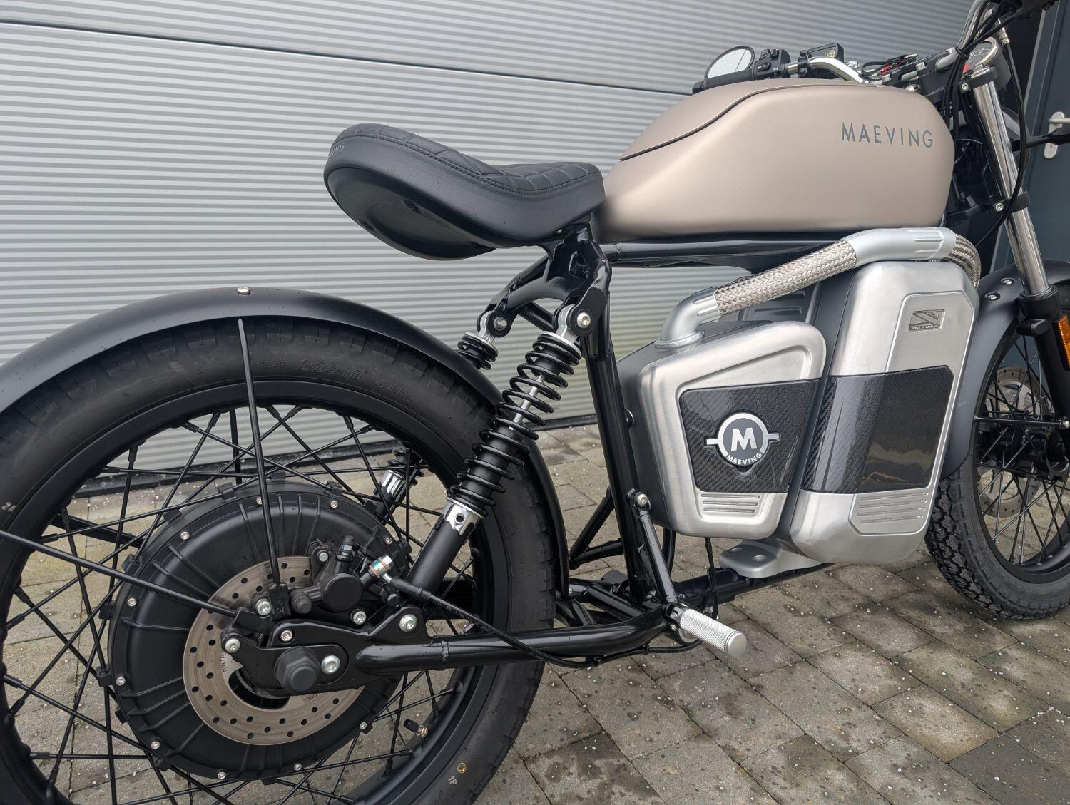 Maeving Rm1 S finished in Brown , carbon infills embossed seat.