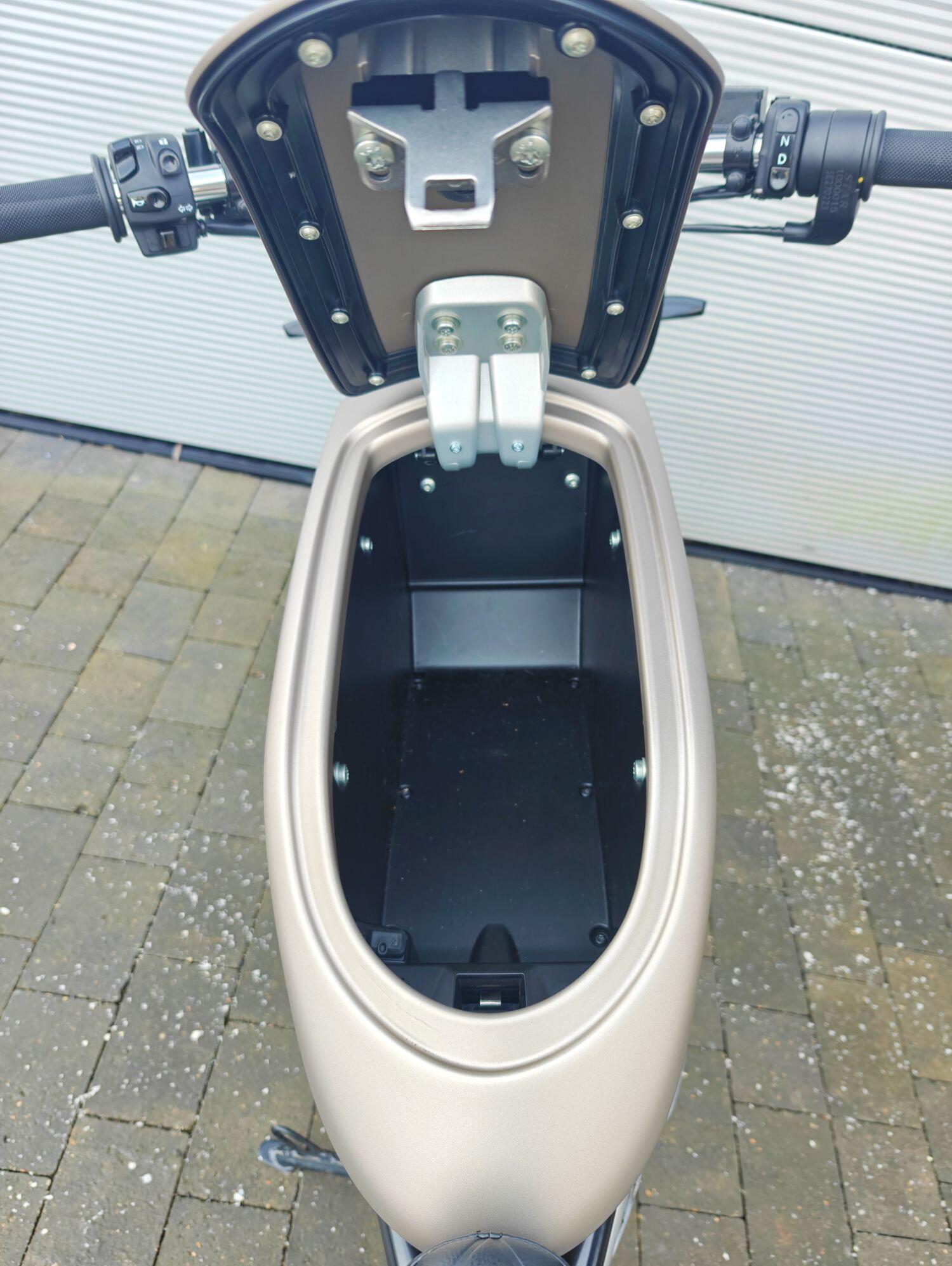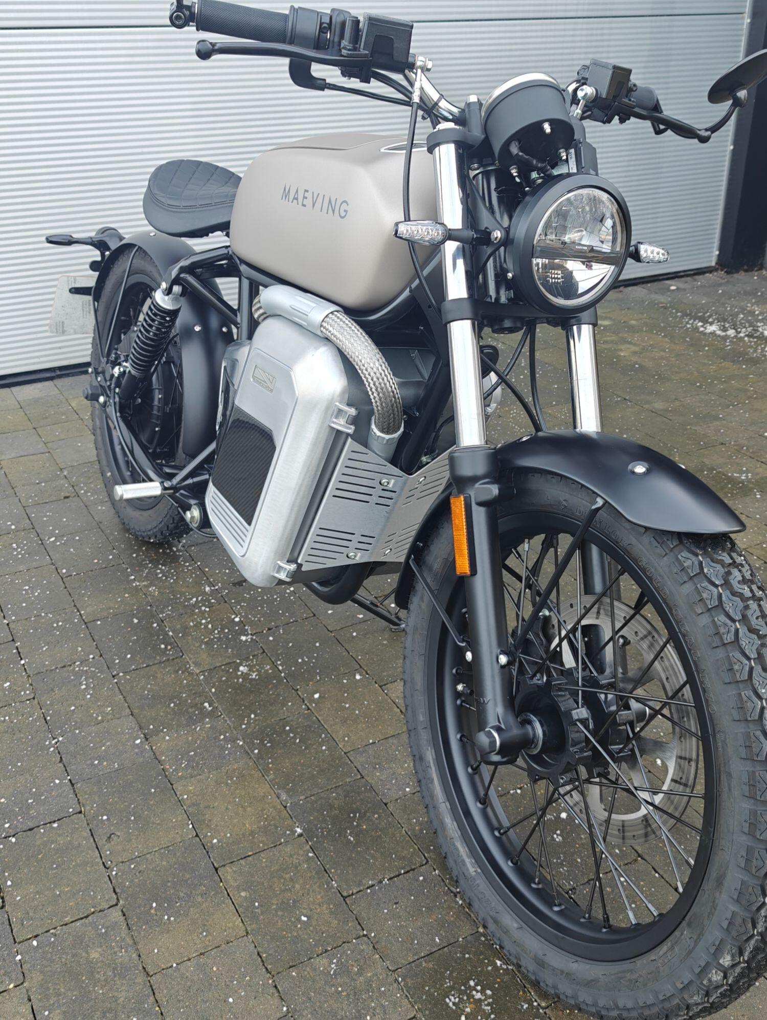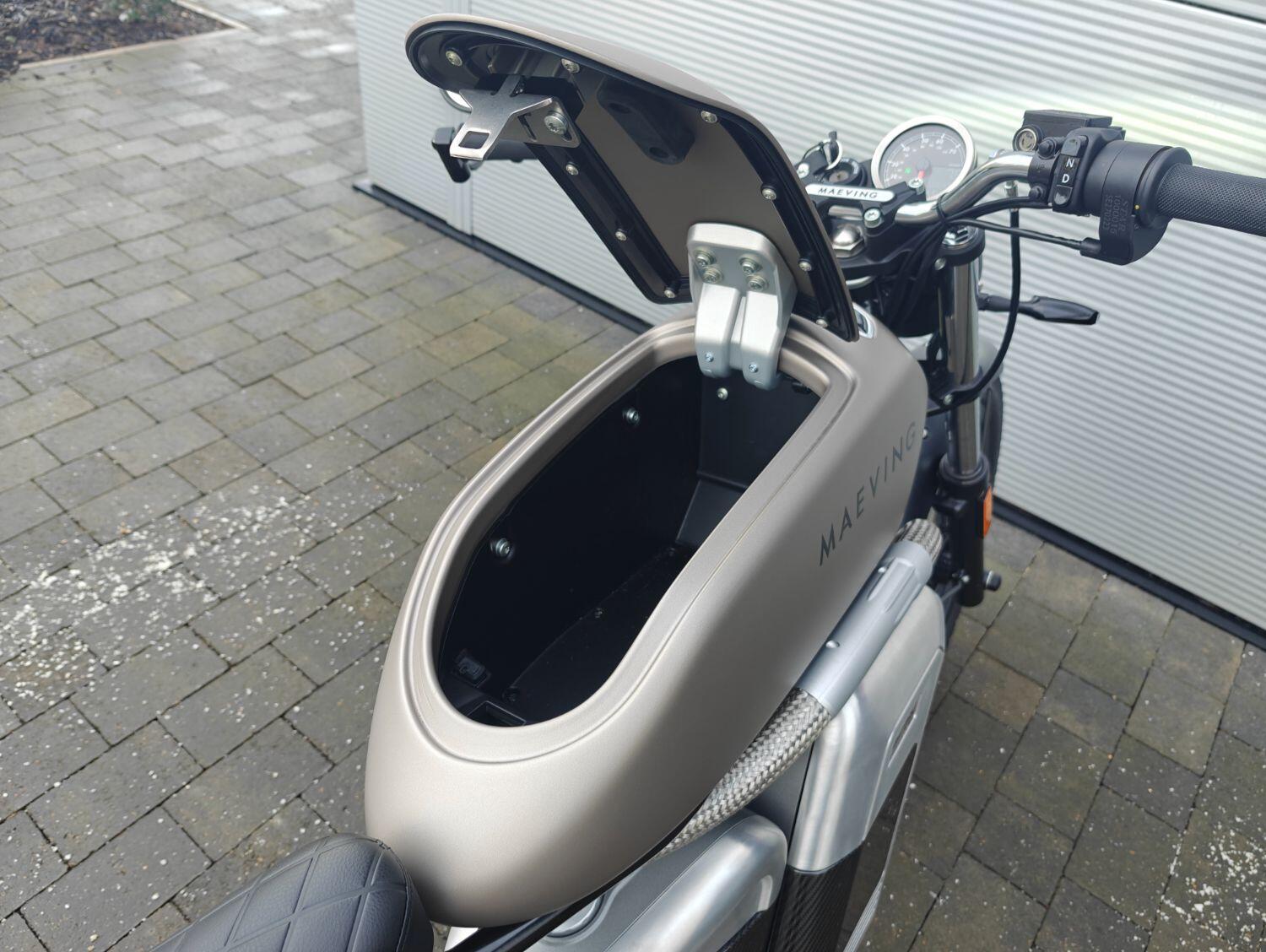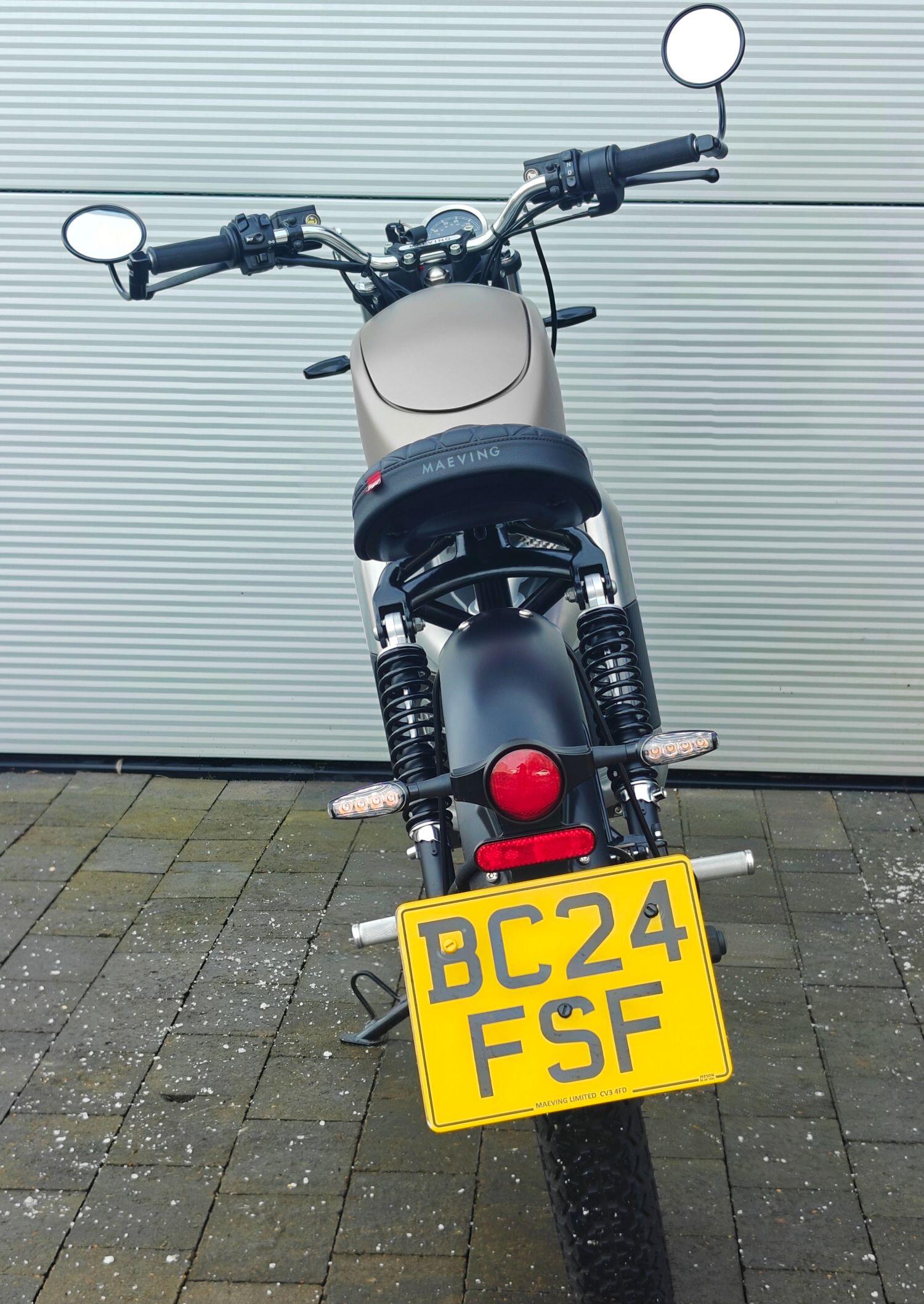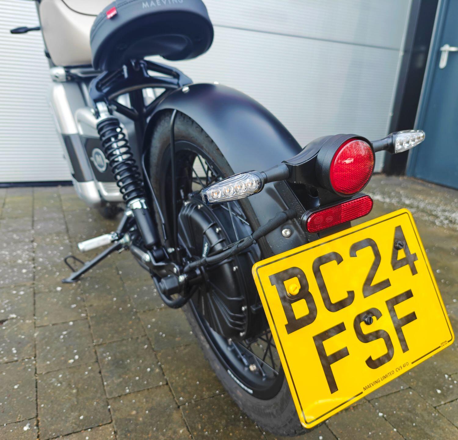 Maeving Rm1 S finished in Brown , carbon infills embossed seat.