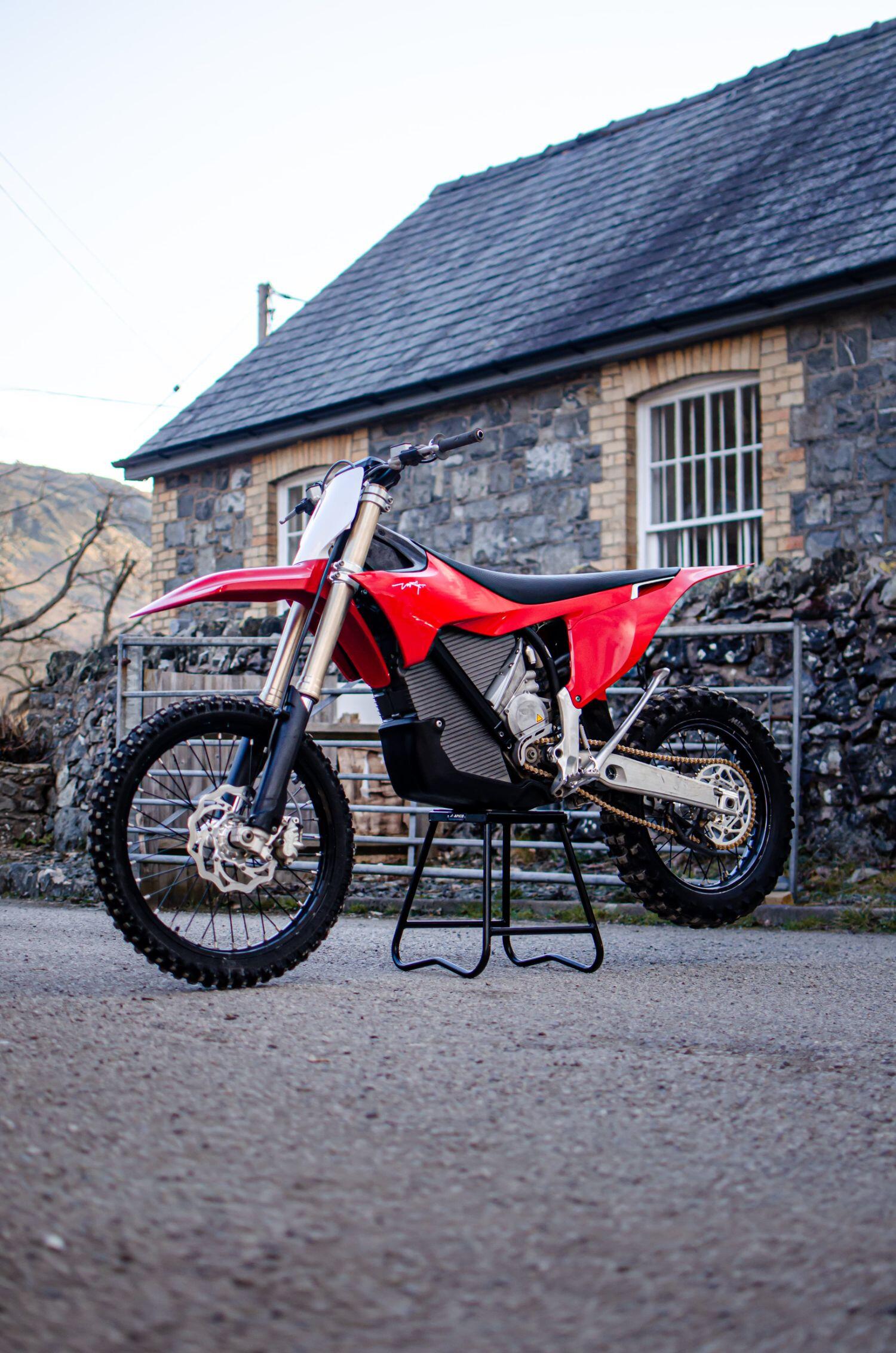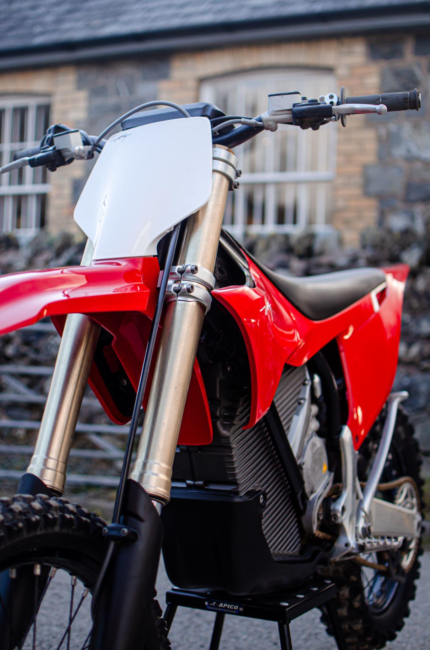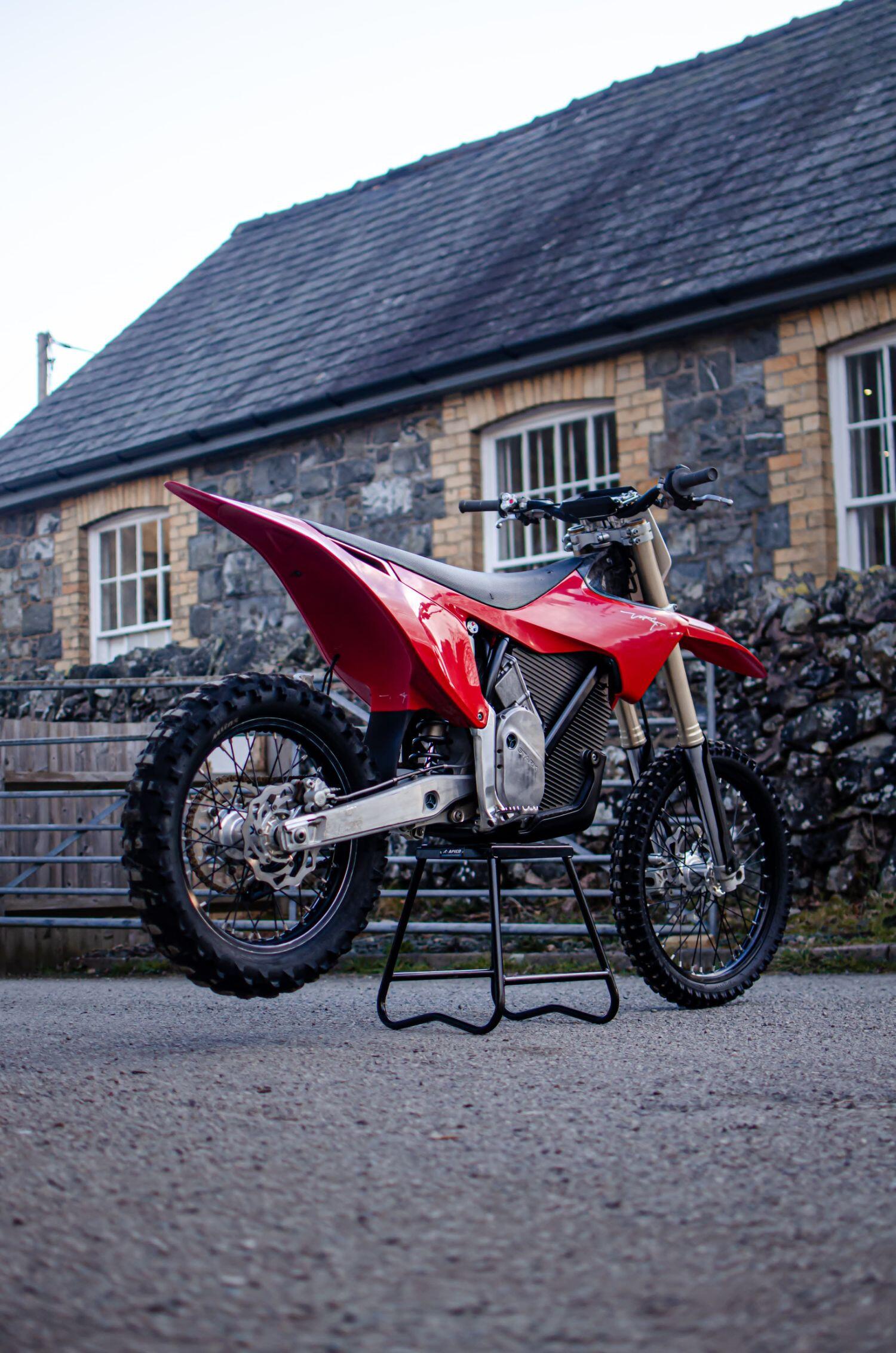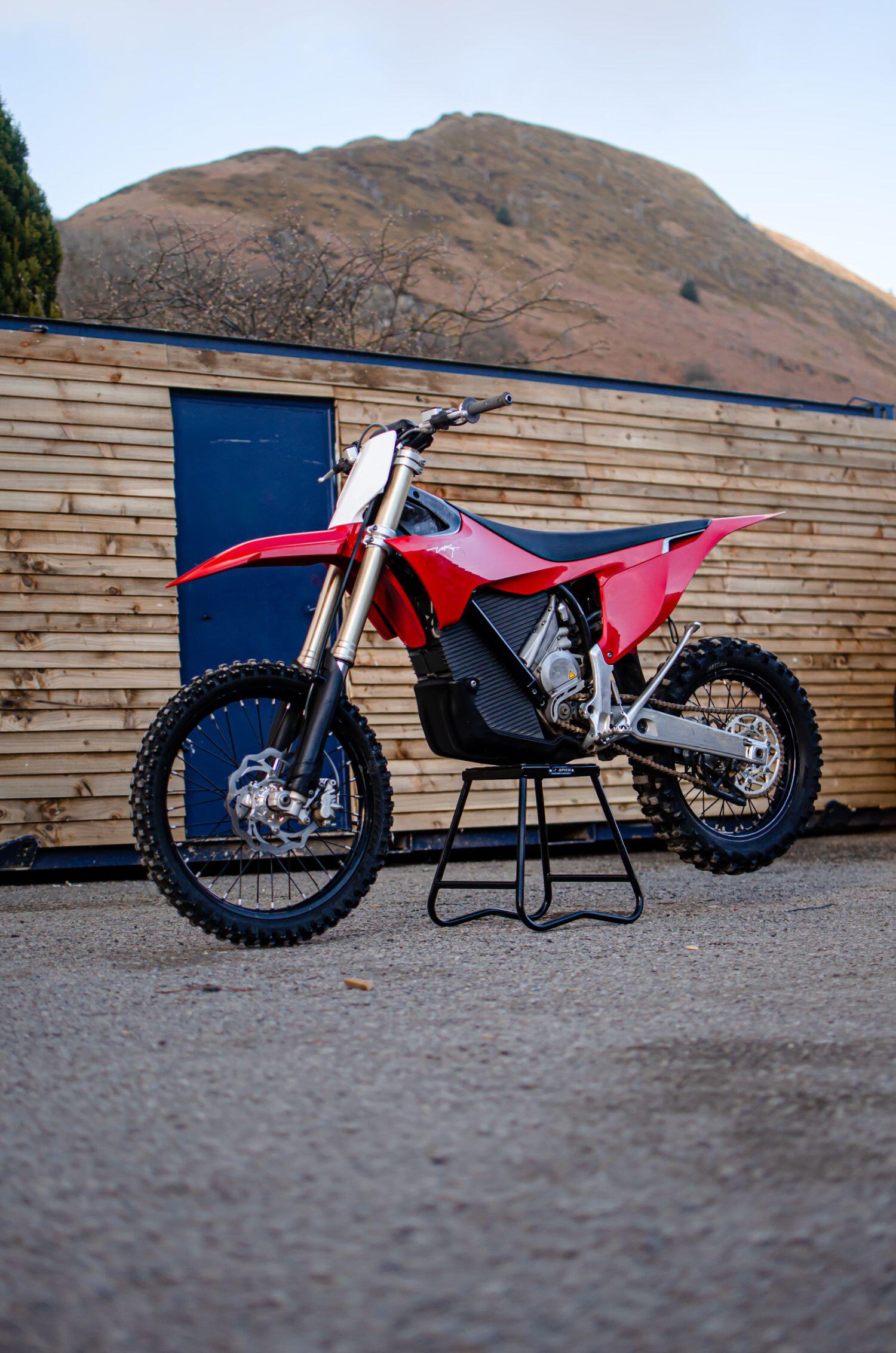 Stark Varg Electric Motocrosser finished in Stark Red, with around 100 hours. This bike has the rear brake operation as a lever on the handle bars. The bike has the side stand optional extra installed.