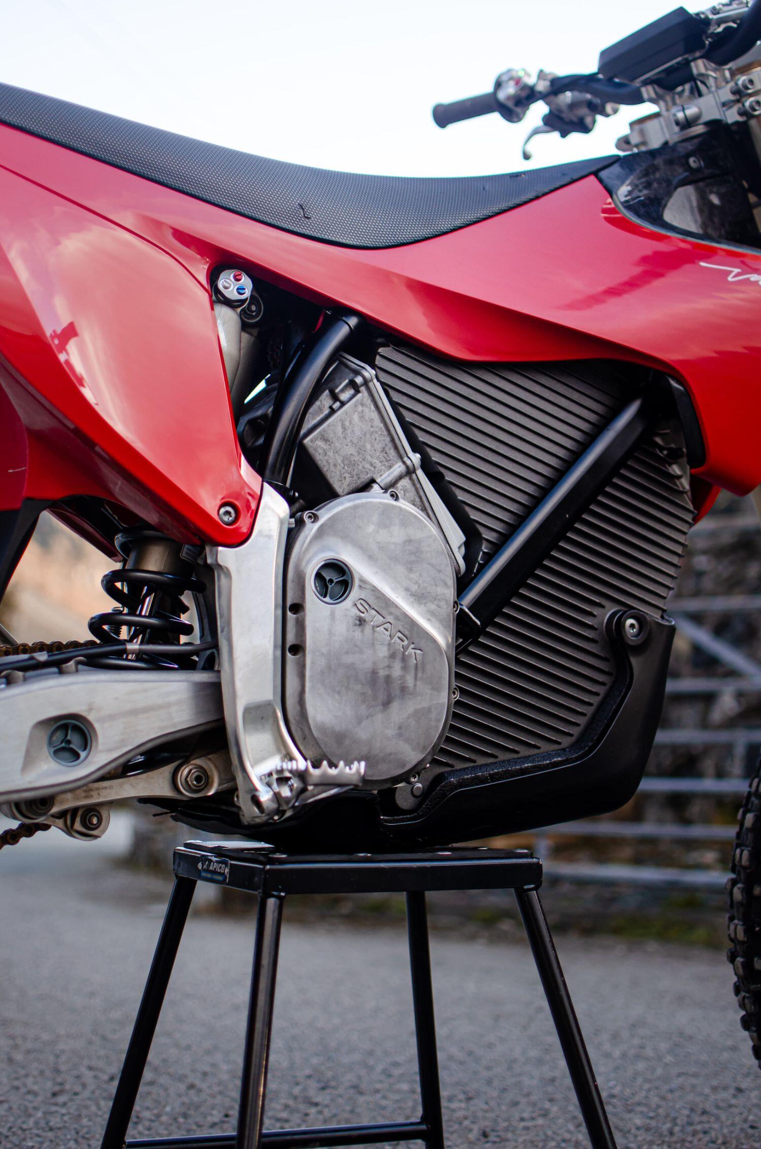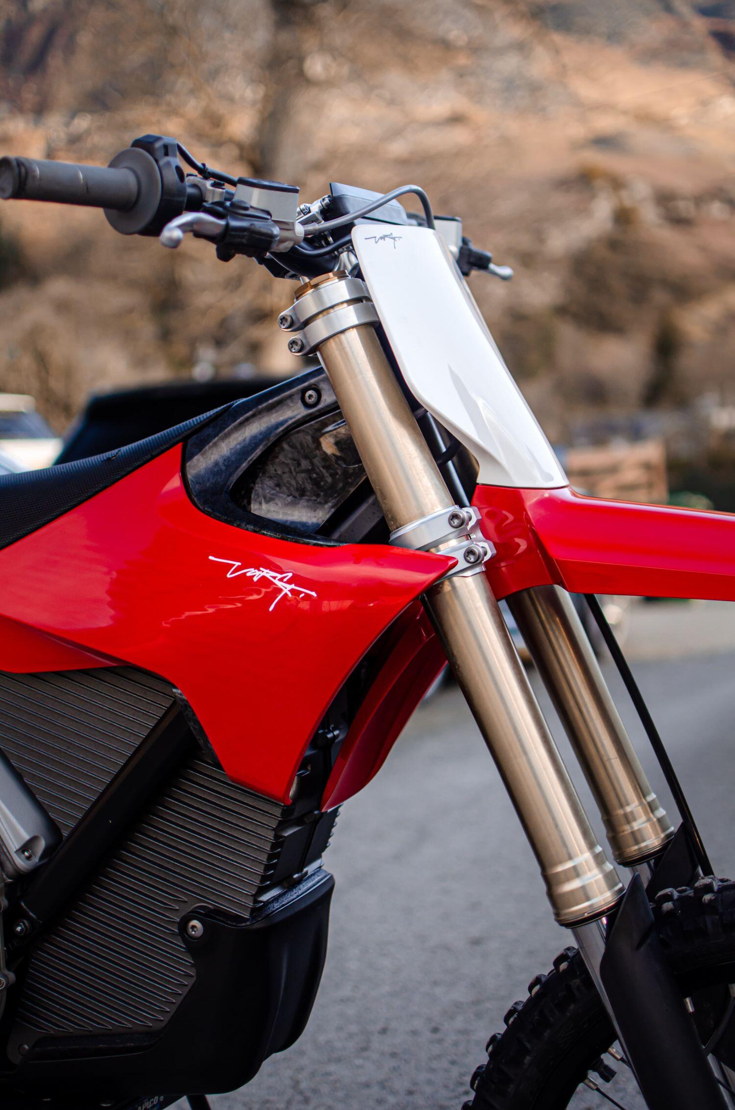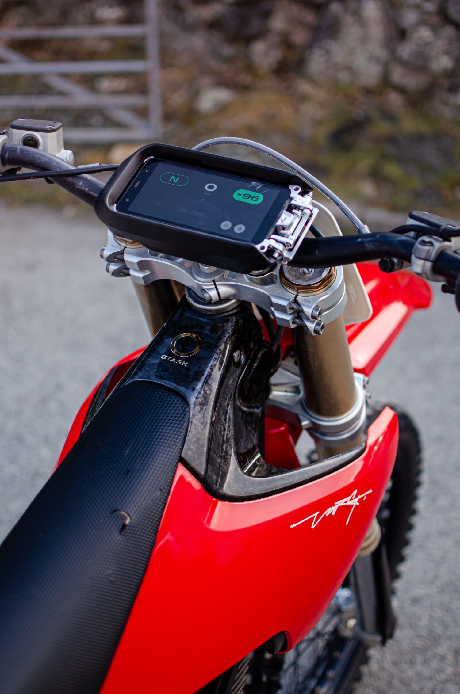 No gears, no clutch, low rotational mass. Effortless to ride, the VARG is designed to ease riding, making you better. With a low centre of gravity and optimised weight distribution, the VARG offers pure agility. Zero emissions means low cost of ownership. The VARG requires a very low and simple maintenance. Its as easy as taking care of a bicycle. The 6,5 Kwh battery delivers up to 60HP, allowing up to 6 hours of technical trail riding or enough to finish a full Motocross race. Fully recharges in under 2 Hours. The VARG has 30% more power than a 450cc combustion bike. It delivers 938nm of torque while spinning the carbon fibre sleeve motor at up to 14,200rpm. Crawl your Varg at walking speed - both forward and in reverse! A truly incredible function when turning the bike around on a tight trail or simply loading the bike. The VARG's display is a shock-resistant, waterproof, fully functioning smartphone. When locked into place it charges and connects wirelessly to the bike. A simple swipe on the Stark phone adjusts the power curve or regenerative braking. Switch between modes with the push of a button - while riding. 100% customizability through the VARG app. Adjusts the power modes, record tracks and keep detailed stats of all your rides. Seamless over-the-air updates adds new features to the VARG's software, continously enhancing the performance of your bike.