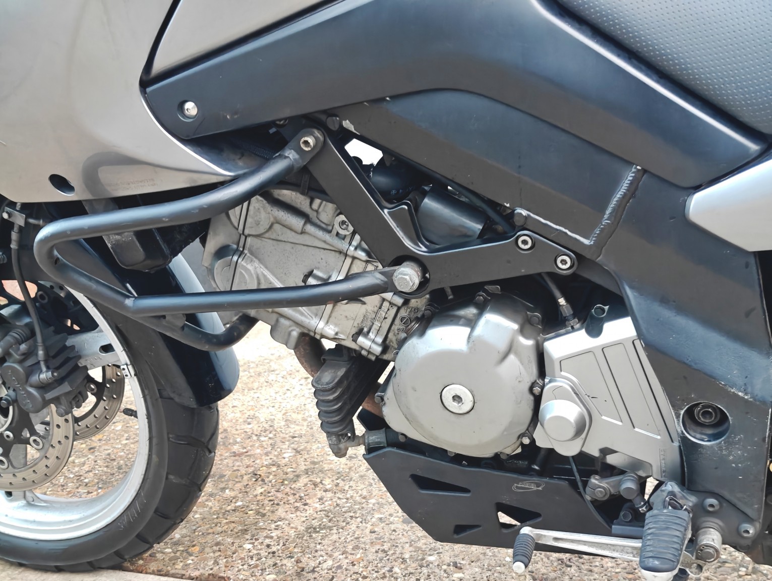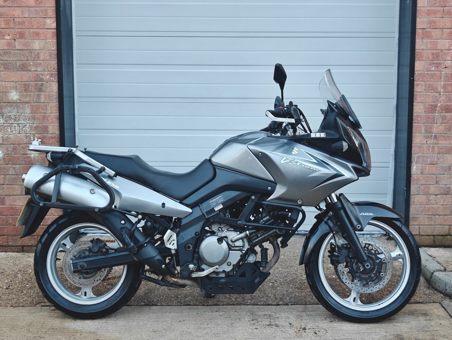 Suzuki V-strom 650 GT finished in Silver with 26,037 miles. This bike benefits from Service History, Topbox, Centre Stand, Lower Crash Bars, Hand Guards and Sump Guard